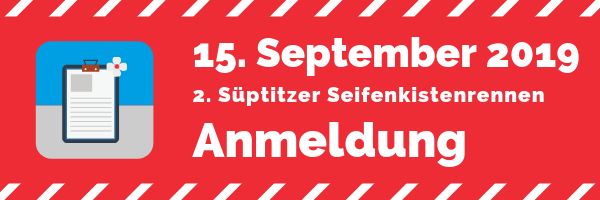 Es geht los. Wir nehmen ab heute bis zum 01. September 2019 eure Anmeldungen für das 2. Süptitzer Seifenkistenrennen entgegen.