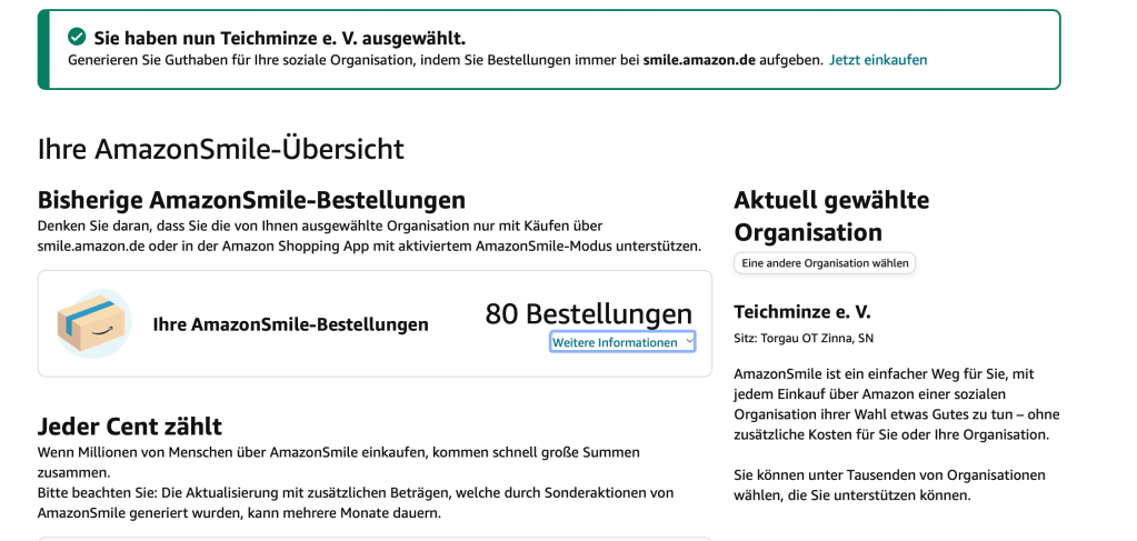 (Um zu spenden, müsst ihr auch zukünftig über smile.amazon.de den Amazon Shop aufrufen.